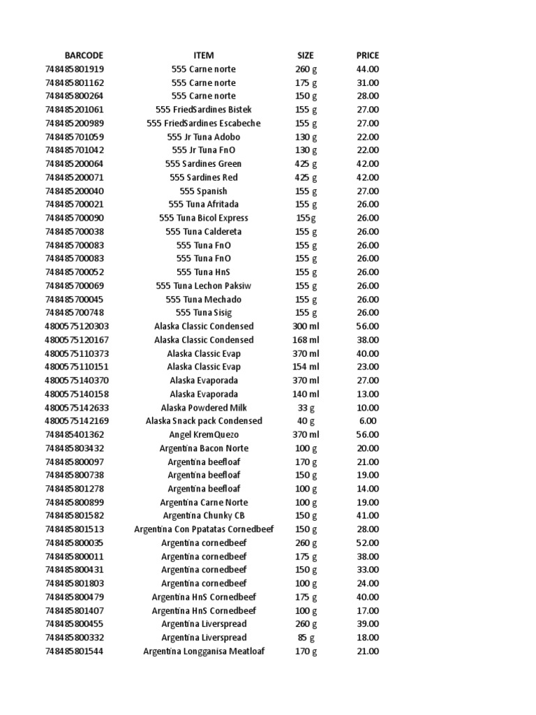 Pricelist Xlsx Grocery Items Energen Chocolate G Taste 3n1 Wht www.coursehero.com