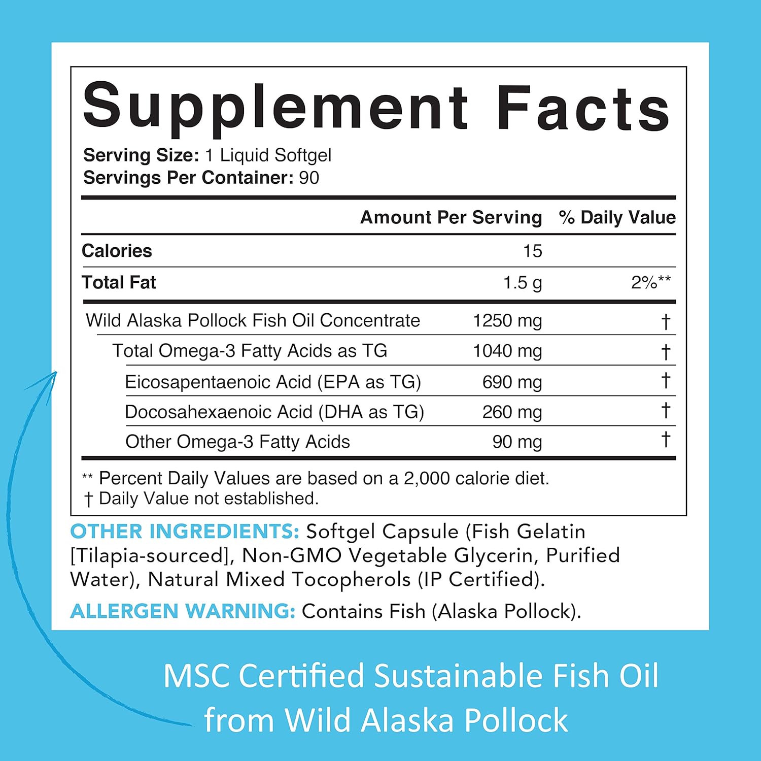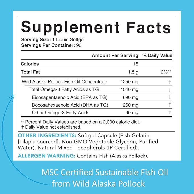 Alaska Wild Fish Oil Mega Omega 3 90 Enteric Coated Softgels