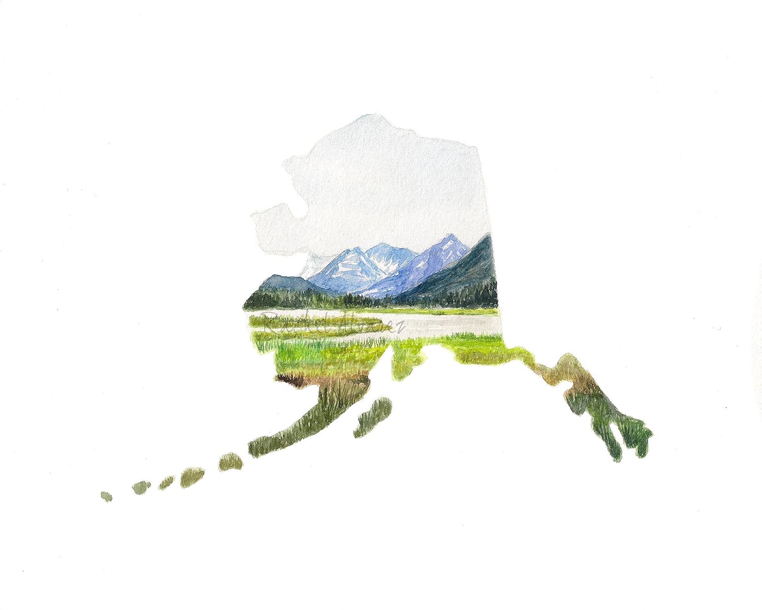 Surprise Glacier Alaska Watercolor Bohoy By Artist Johanna