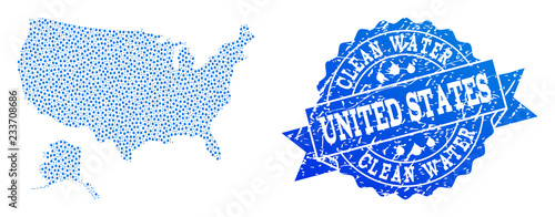 Map Of Usa And Alaska Vector Mosaic And Clean Water Grunge Stamp stock.adobe.com