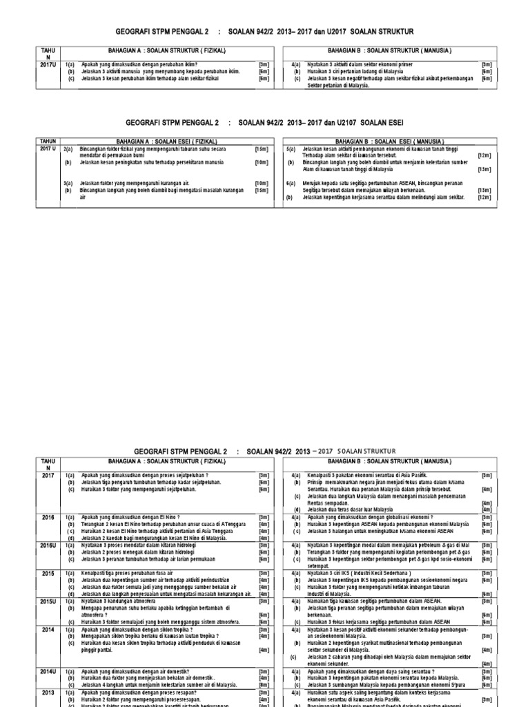 Koleksi Soalan Contoh Geografi Manusia Tema 2 Pembangunan Ekonomi