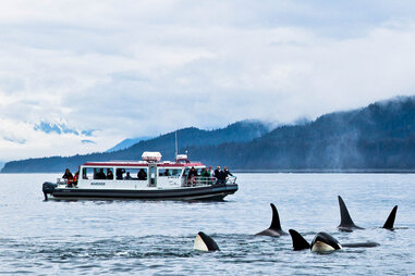 From the comfort of a heated jet boat or catamaran enjoy views of fjords and snow drizzled mountains and delight in a medley of wildlife including orcas humpbacks otters sea lions and bald eagles. The mv scania is the premier whale watching boat in juneau. Appreciate the snacks and a clean restroom.
