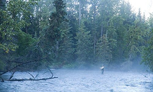 Man Is Standing In The Water Fly Fishing At Quartz Creek Alaska
